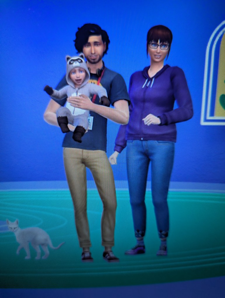 Here’s a picture of my cute Sims family. I plan to only play as them and expand the family, because that’s always fun. I wonder if they’ll be able to roleplay some of my novel’s plot eventually, too. Baby Charlie is dressed like a raccoon, yes.